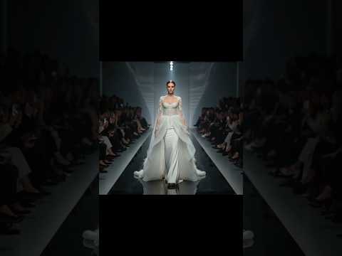 stunning off white bridal gown, feathered overskirt that creates a dramatic look.